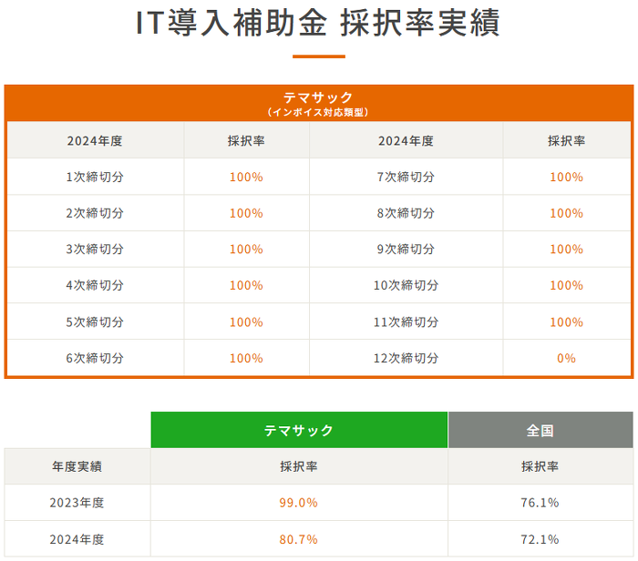 テマサックProはインボイス枠(インボイス対応類型)と通常枠で採択されました。